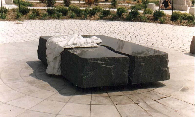 This is a picture of a sculpture at the Spiritual Life Centre in Wichita, Kansas. Called “Resurrection”, it is made of Vermont white marble and African black granite. It was created by Jerzy Kenar and George Kurjanowicz, if you look closely you can see that it is actually a fountain – there is water trickling out of the crack in the granite slab unto the ground.