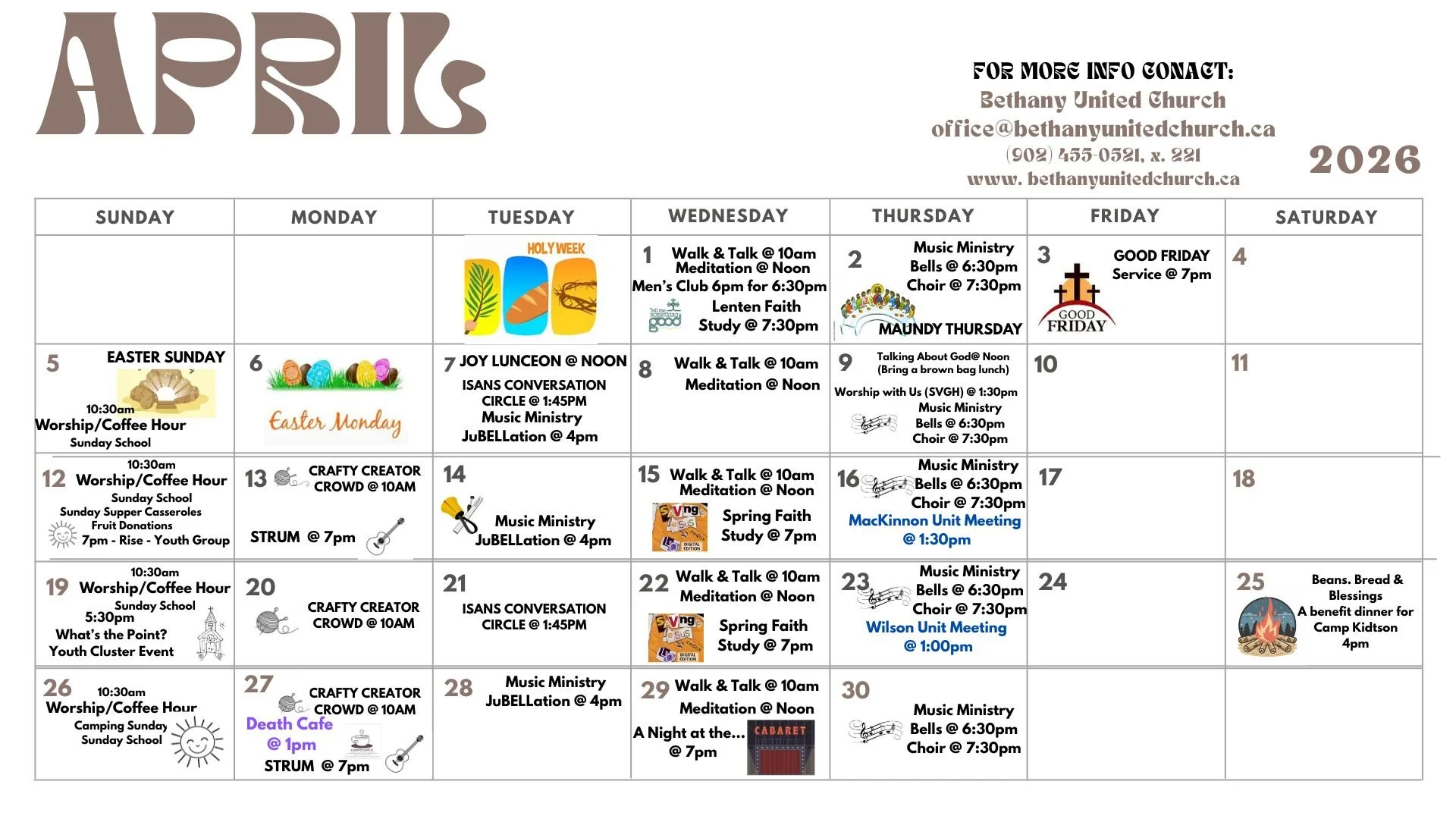 Sunday, April 12, 2026, is our next date to be meal makers. Fruit donations of apples, oranges, and pears are also needed. These items can be dropped off before or after our worship service the same day. (Please no bananas.)